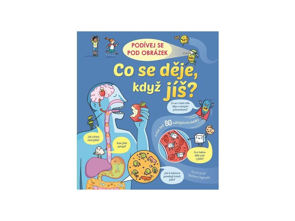 Jídlo je pro tělo a jeho správné fungování nezbytné. Ale co se s potravinami děje, když je sníš? Kam putuje sousto, které spolkneš? Kde a jak skončí? Pokud si kladeš podobné otázky a toto téma tě zaujalo a chceš se dozvědět více o fungování lidského tělo a orgánů, odklop více než 80 okének v knize a zjisti mnoho zajímavých informací. Dozvíš se, co jsou to vitaminy, jestli je cukr pro tělo opravdu prospěšný, jak tělu pomáhají bílkoviny, zda jsou všechny bakterie pro tělo škodlivé a mnoho dalšího. Tak neváhej a pojď se do této knížky pořádně zakousnout!Doplňkové parametry