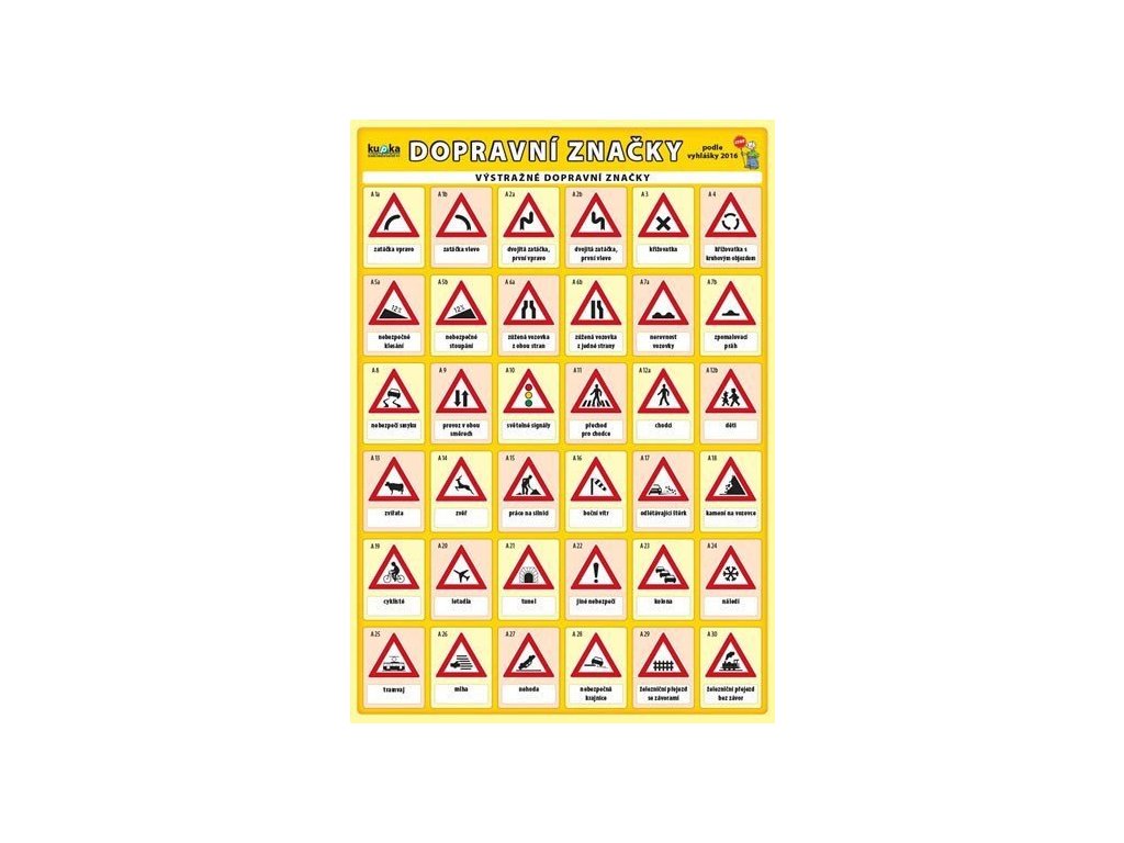 Aktualizovaný seznam všech dopravních značek a dopravních zařízení podle vyhlášky účinné od 1. 1. 2016. Vedle svislých a vodorovných dopravních značek titul rovněž obsahuje dopravní zařízení, světelné signály, speciální označení vozidel a pokyny policisty při řízení provozu.Doplňkové parametry