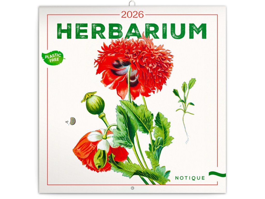 Dvanáct ilustrací rostlin a bylin v praktickém poznámkovém kalendáři. Kalendář obsahuje přehledné kalendárium od září 2025 do prosince 2026 v osmi jazycích, měsíční fáze, důležité svátky a prostor pro poznámky na každý den. Kalendář je součástí kolekce Plastic Free, je zabalený v obálce z recyklovaného papíru a vytištěný na recyklovaném strukturovaném papíře s vysokou gramáží.Doplňkové parametry