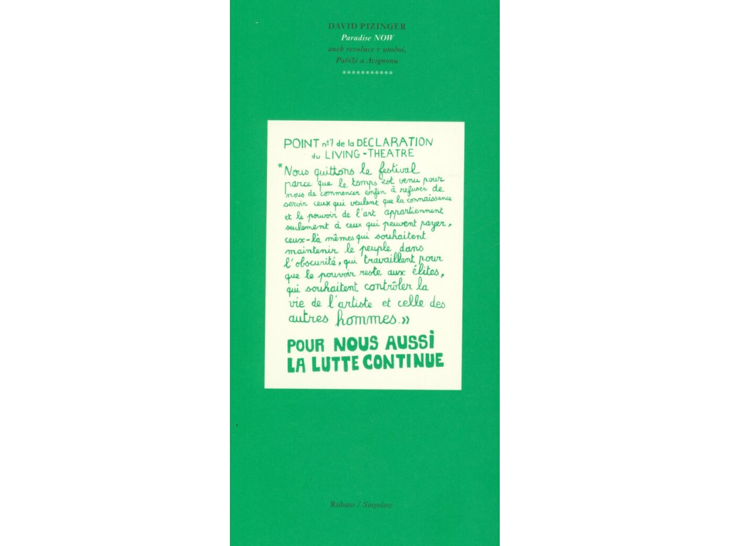 Publikace popisuje průběh divadelních inscenací souboru Living Theatre na Avignonském festivalu v roce 1968.Každá z inscenací obsahuje jiný princip proměny vnímání, který má vést diváky k novému, revolučnímu způsobu jednání. Prostřednictvím nových scénických forem Living Theatre usiluje objevit nové formy vnímání, které umožní vytvořit podmínky pro anarchistickou revoluci. Pokusy promítnout revoluci ze scény do skutečnosti však vedou k dystopickým účinkům. Inscenování revoluce na druhou stranu otevírá účastníkům nové druhy dojmů, které by nebylo možné vyjádřit jinak a jinými prostředky.Doplňkové parametry
