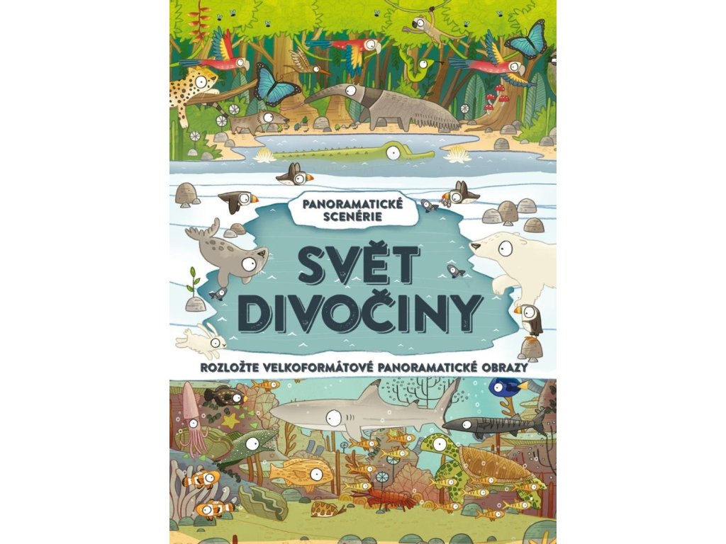 EDICE PANORAMATICKÉ SCENÉRIE Vypravte se na průzkumnou výpravu do světa divočiny a seznamte se s tvory, kteří zde žijí. Bohatě ilustrované stránky této knihy vám umožní nahlédnout do každého z biotopů, od deštných pralesů Amazonie po arktickou tundru. Rozložitelná velkoformátová zobrazení pak nabídnou podrobný pohled. - Rozložte stránky, prohlédněte si velkolepé přírodní scenérie a objevte stovky různých zvířat. - Prozkoumejte biotopy z různých částí světa, od tropických pralesů po zamrzlou Arktidu. - Najděte ukrytá zvířata na zemi, ve vodě i na obloze. - Objevte zajímavosti o různých zvířatech, od nepatrných termitů po obří keporkaky.Doplňkové parametry