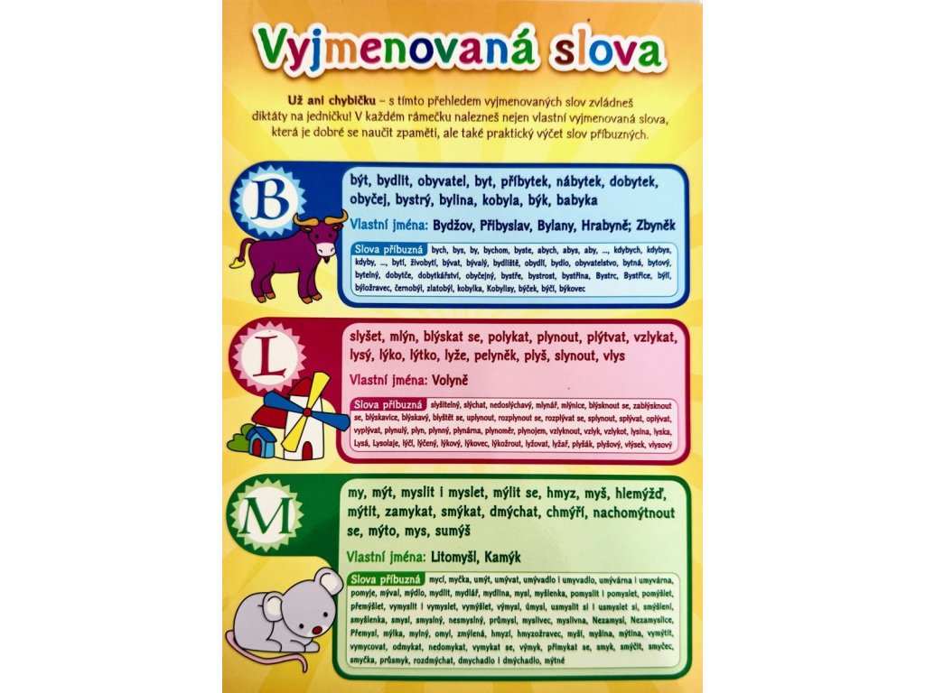 S tímto přehledem vyjmenovaných slov se naučíš všechna vyjmenovaná slova levou zadní! Příjemný A5, vhodný třeba do sešitu.Doplňkové parametry
